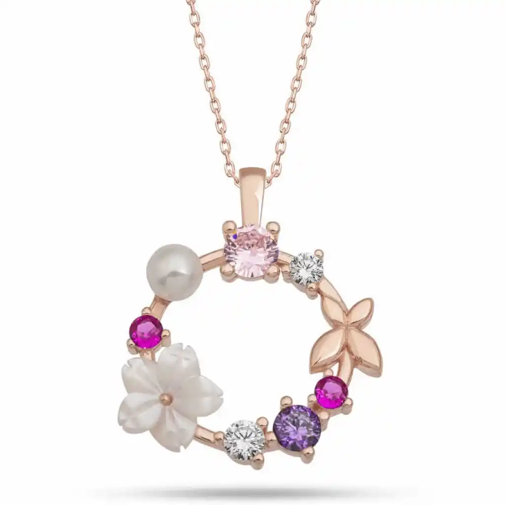 Gümüş Rose Manolya Çiçeği Kelebek Kadın Kolye
