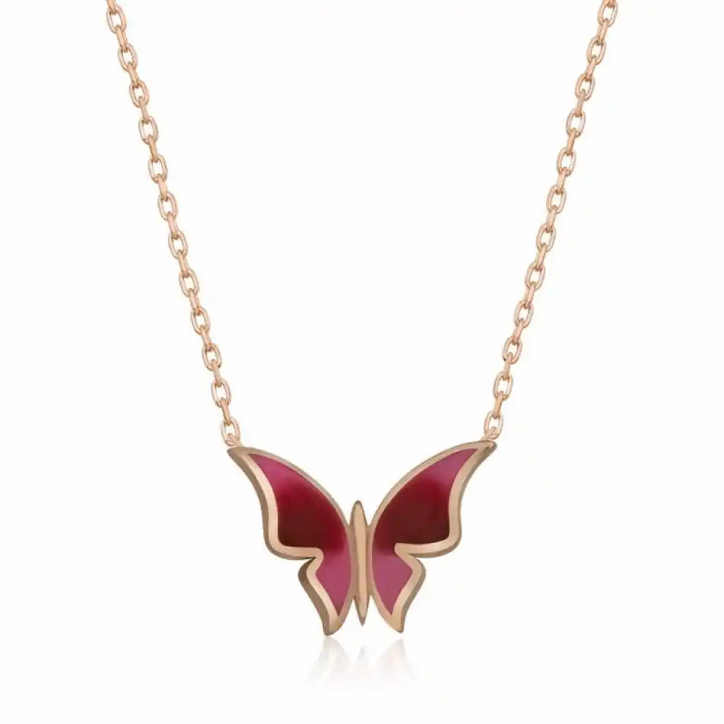 Özgürlüğü masumiyeti ve saflığı simgeleyen kelebekler, tertemiz sevginin ve aşkın ifadesidir. Bahar kelebekleri kolye anlam itibari ile aşkın küçük bir kıvılcım ile başladığı daha sonra büyük bir sabır ile büyüdüğü ve en sonunda ilan-ı aşkı ifade eder. Sizin olduğu kadar sevdiklerinizin de keyifle takacağı minimal kelebek bayan kolye en güzel hediyelerden biri olacaktır. Kolye 925 ayar gümüşten imal edilmiştir. Gümüş üzerine rose kaplama yapılmıştır. Rose kaplama yapılan gümüş bayan kolyeler parlaklığını uzun süre muhafaza eder, ve oksitlenmeyi geciktirir. Kolye üzerinde bulunan renkler mine işlemesidir. Gümüş olan zincir boyu ortalama 45 cm"dir. Tüm gümüş bayan kolyelerde olduğu gibi gümüş minimal kelebek bayan kolye de el emeği ile üretilmiştir. Gümüş ve değerli taşlar nedeniyle belirtilen ürün ağırlığında ± %10 sapma olabilmektedir.