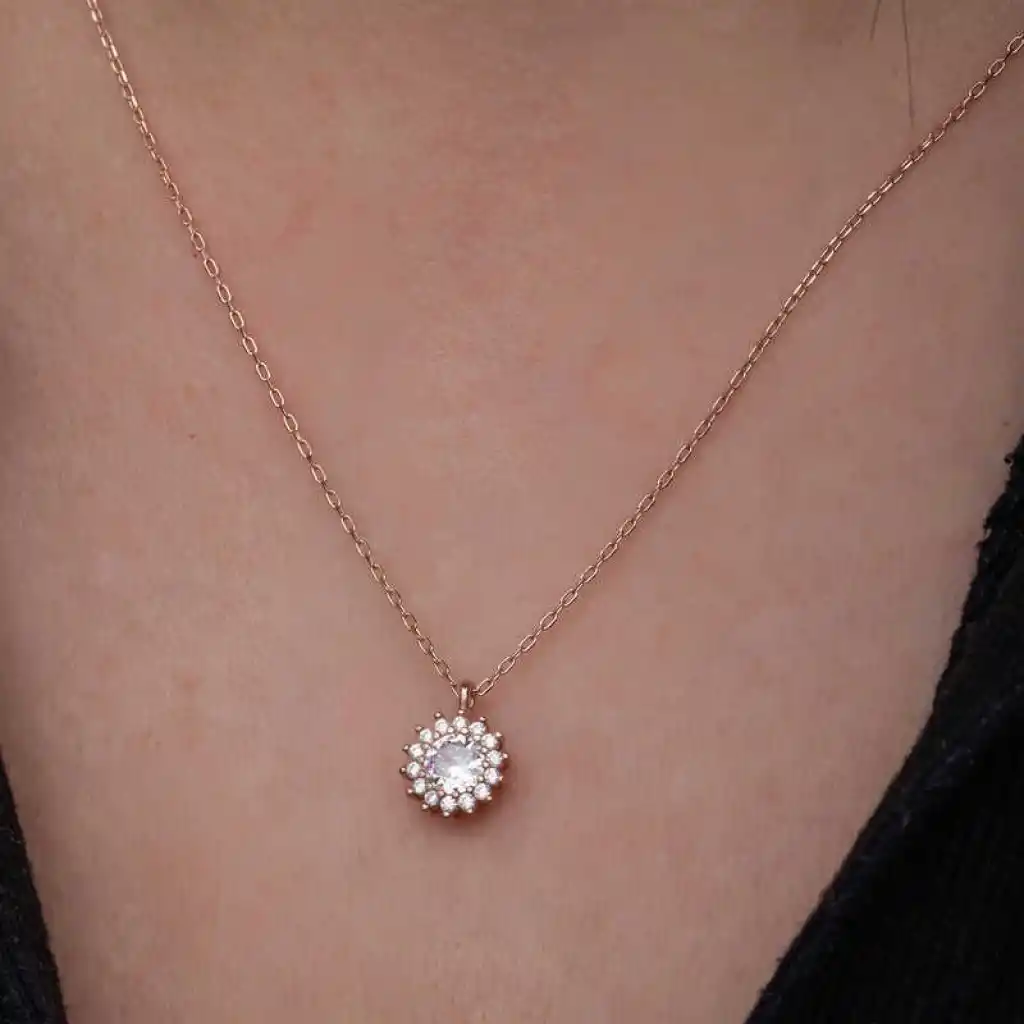Gümüş Rose Minimal Yuvarlak Anturaj Kadın Kolye