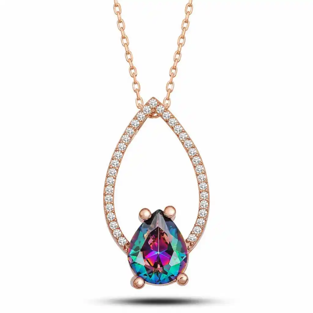 Gümüş Rose Mistik Topal Taşlı Damla Kadın Kolye