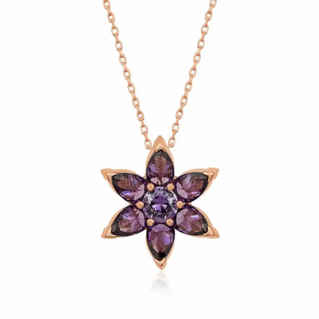 Gümüş Rose Mor Çiçek Kolye