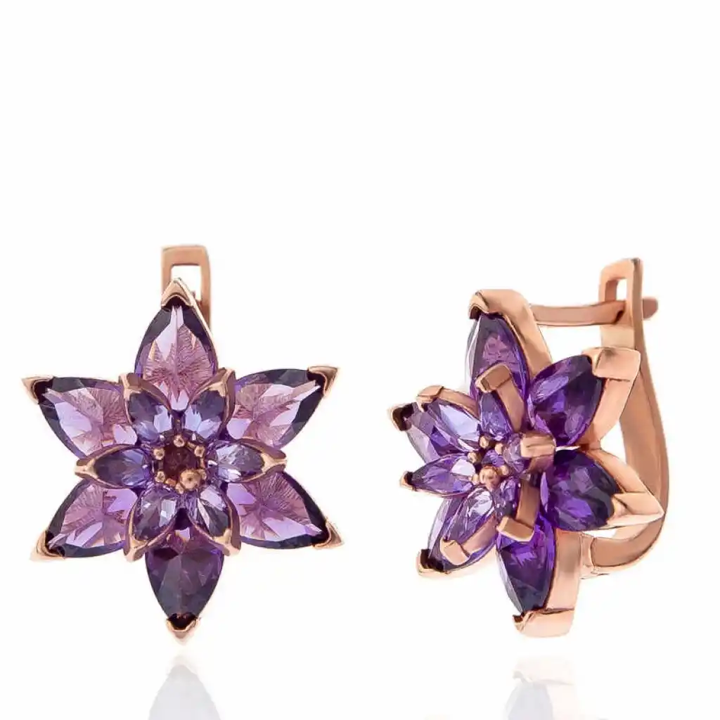 Gümüş Rose Mor Lotus Çiçeği Kadın Küpe
