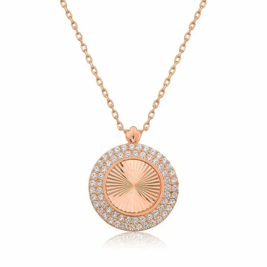 Gümüş Rose Yuvarlak Fırfır Bayan Kolye