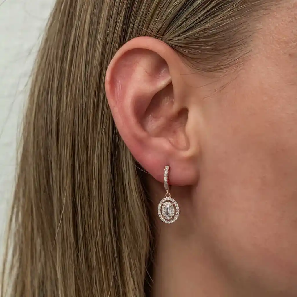 Gümüş Rose Oval Taşlı Sallantılı Küpe