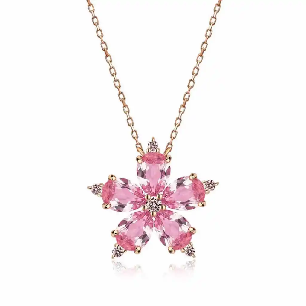 Gümüş Rose Pembe Kamelya Çiçeği Kolye