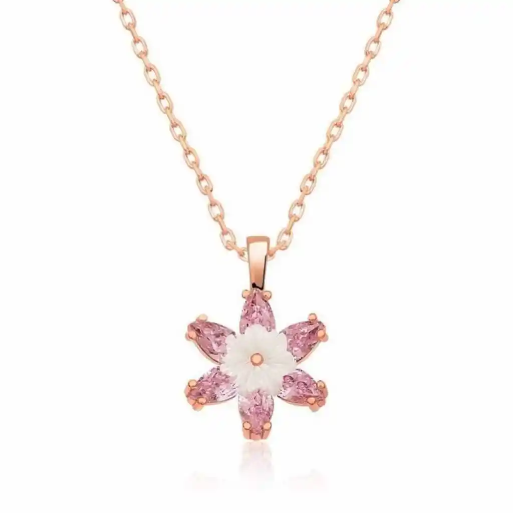 Gümüş Rose Pembe Lotus Çiçeği Kolye