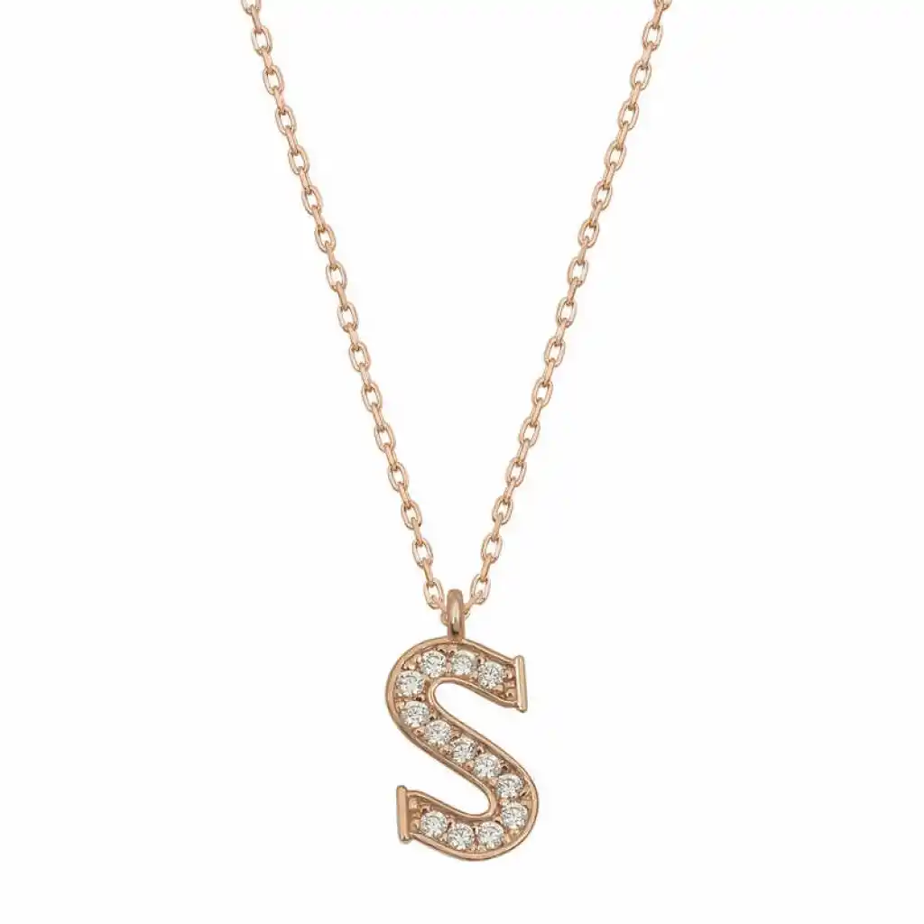 Gümüş Rose S Harfi Kadın Kolye