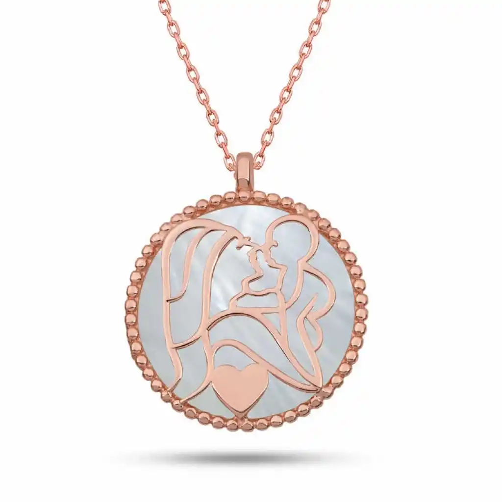 Gümüş Rose Sedef Taşlı Anne Çocuk Sevgisi Kolye