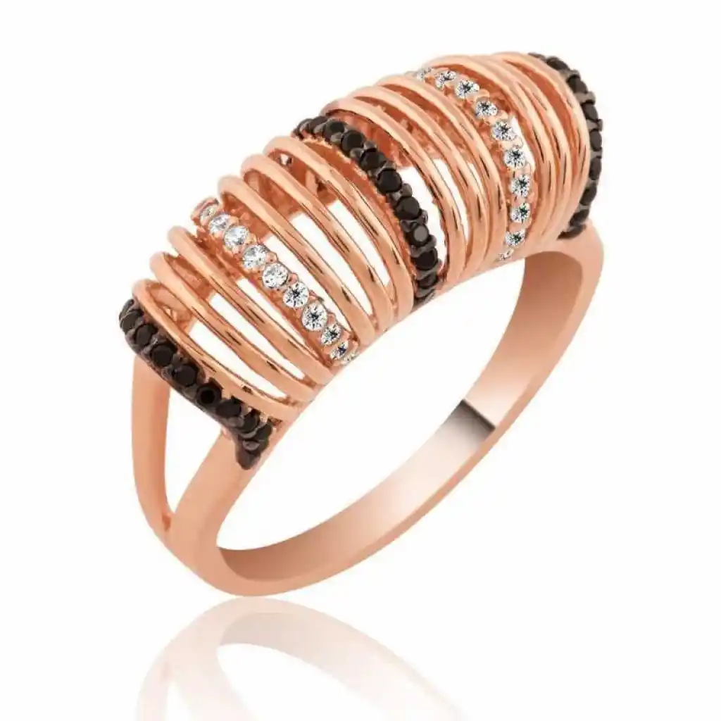 Gümüş Rose Siyah Beyaz Taşlı Bayan Yüzük