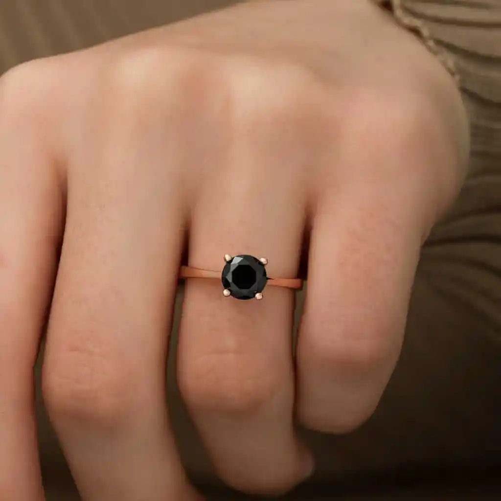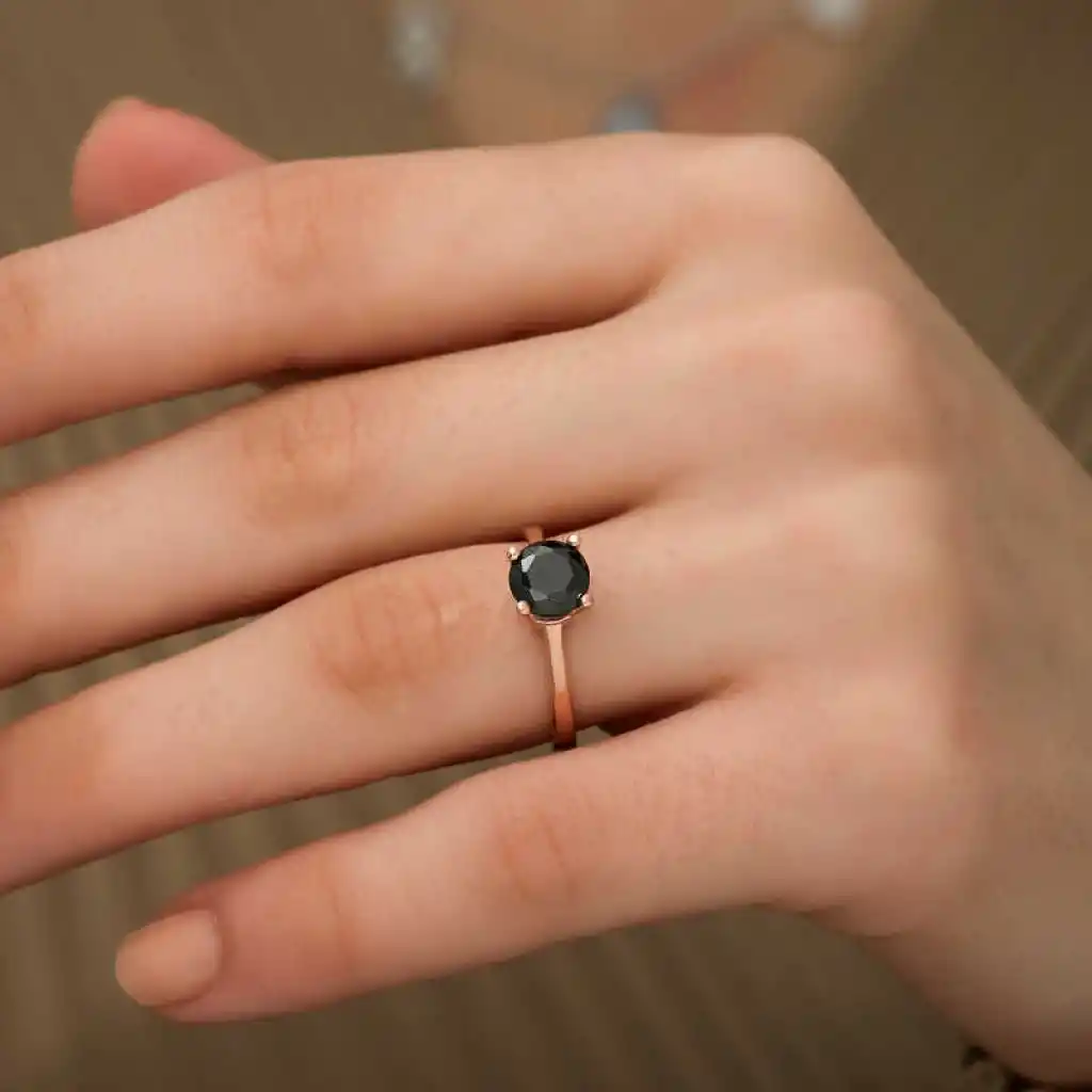 Gümüş Rose Siyah Tek Taş Bayan Yüzük