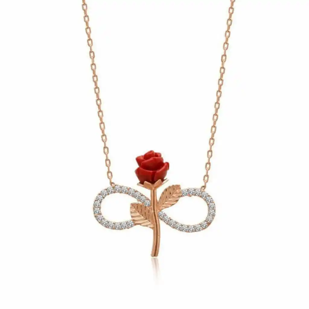 Gümüş Rose Sonsuz Gül Bayan Kolye