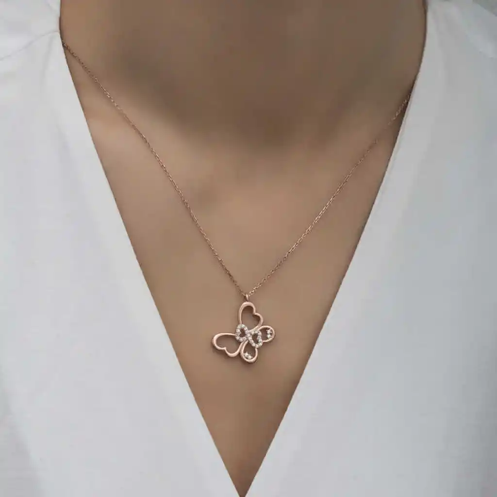 Gümüş Rose Sonsuzluk Kelebek Kadın Kolye