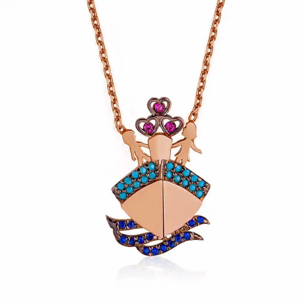Titanik gemisinde yaşanan o müthiş aşkı sizler için tasarladık... Bu şık ve anlamlı kolyeyi doğum günü hediyesi, sevgililer günü hediyesi veya annelere hediye olarak özel günlerde tercih edilebilecek mükemmel bir seçenektir. Titanik kadın kolye 925 ayar gümüşten imal edilmiştir. Gümüş üzerine rose kaplama yapılmıştır. Rose kaplama yapılan kadın kolyeler parlaklığını uzun süre muhafaza eder ve oksitlenmeyi geciktirir. Zincir boyu ortalama 45 cm'dir. Üzerinde bulunan taşlar firuze ve zirkondur. Tüm kadın kolyelerimizde olduğu gibi gümüş titanik kadın kolye de tamamı el emeği ile üretilmiştir. Gümüş ve değerli taşlar nedeniyle ürün ağırlığında ± %10 sapma olabilmektedir.