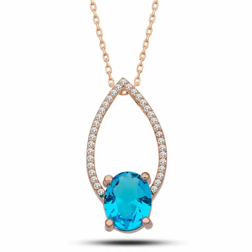Gümüş Rose Turkuaz Oval Taşlı Kadın Kolye