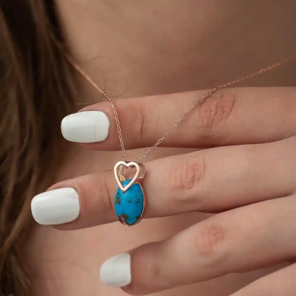 Gümüş Rose Turkuaz Taşlı Kalp Kolye