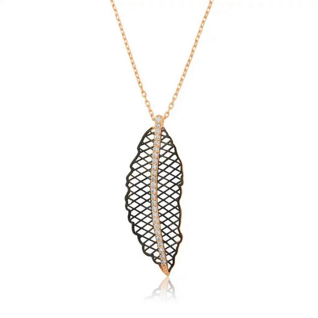 Tek bir yaprağın mutluluğu temsil eden eski bir hanedanlık sembolü olduğu söylenir. Ancak, mutluluktan daha fazlasını da temsil edebilir. Aslında yaprak, hayatın bir sembolü olduğu gibi yaşamın çeşitli yönlerini de sembolize eder. Aynı zamanda ölümü de temsil edebilir. İlkbaharda doğan yapraklar. Yaz aylarında, yeşil tonlarıyla büyümeye devam eder. Sonbaharda turuncu, sarı, bordo ve kırmızı renklerin güzelliği ortaya çıkmaktadır. İlk başta göz karmaşası yaratan yapraklar en sonunda kahverengi bir renge dönüşüyor ve yere düşerek ölüyorlar. Aslında yaprak, hayatın bir sembolü olduğu gibi yaşamın çeşitli yönlerini de sembolize eder. Hayatın simgesi olan gümüş yaprak kolye kız kardeşinize, sevgilinize ya da arkadaşlarınıza özel günler de armağan edebileceğiniz güzel bir hediye seçeneğidir. Yaprak bayan kolye 925 ayar gümüşten imal edilmiştir. Gümüş üzerine rose altın kaplama yapılmıştır. Rose altın kaplama yapılan gümüş bayan kolye modelleri parlaklığını uzun süre muhafaza eder ve oksitlenmesi gecikir. Gümüş yaprak bayan kolye diğer tüm gümüş bayan kolye modellerinde olduğu gibi el emeği ile üretilmiştir. Gümüş ve değerli taşlar nedeniyle belirtilen ürün ağırlığında ± %10 sapma olabilmektedir.