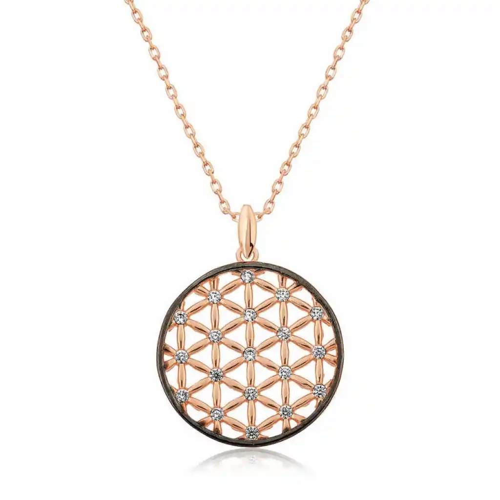Yaşam çiçeği, iç içe geçmiş eşit alana sahip çok sayıda çember ve dışında büyük bir çemberden oluşan geometrik şekilden oluşmaktadır. Her bir çemberin merkezi, çevresindeki altı çemberin çevrelerinin kesiştiği yerdedir. Drunvalo Melchizedek bu sembolün evrenin ve yaşamın sırlarını barındırdığını iddia etmektedir. Günün her anında severek kullanabileceğiniz hoş bir aksesuardır. Gümüş yaşam çiçeği bayan kolye 925 ayar gümüşten imal edilmiştir. Bu kolye üzerine rose altın kaplama yapılmıştır. Rose altın kaplama yapılan ürünler parlaklığını uzun süre muhafaza eder ve gümüşü bakır rengine dönüştürür. Tüm gümüş bayan kolye modellerinde olduğu gibi gümüş yaşam çiçeği bayan kolye modeli de el emeği ile üretilmiştir. Gümüş ve değerli taşlar nedeniyle belirtilen ortalama ürün ağırlığında ± %10 sapma olabilmektedir. Ürünlerimizin tamamı el emeği ile üretilmiştir.