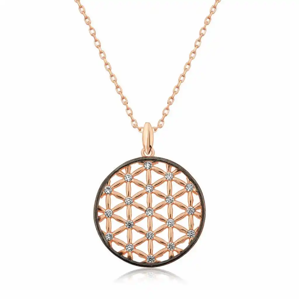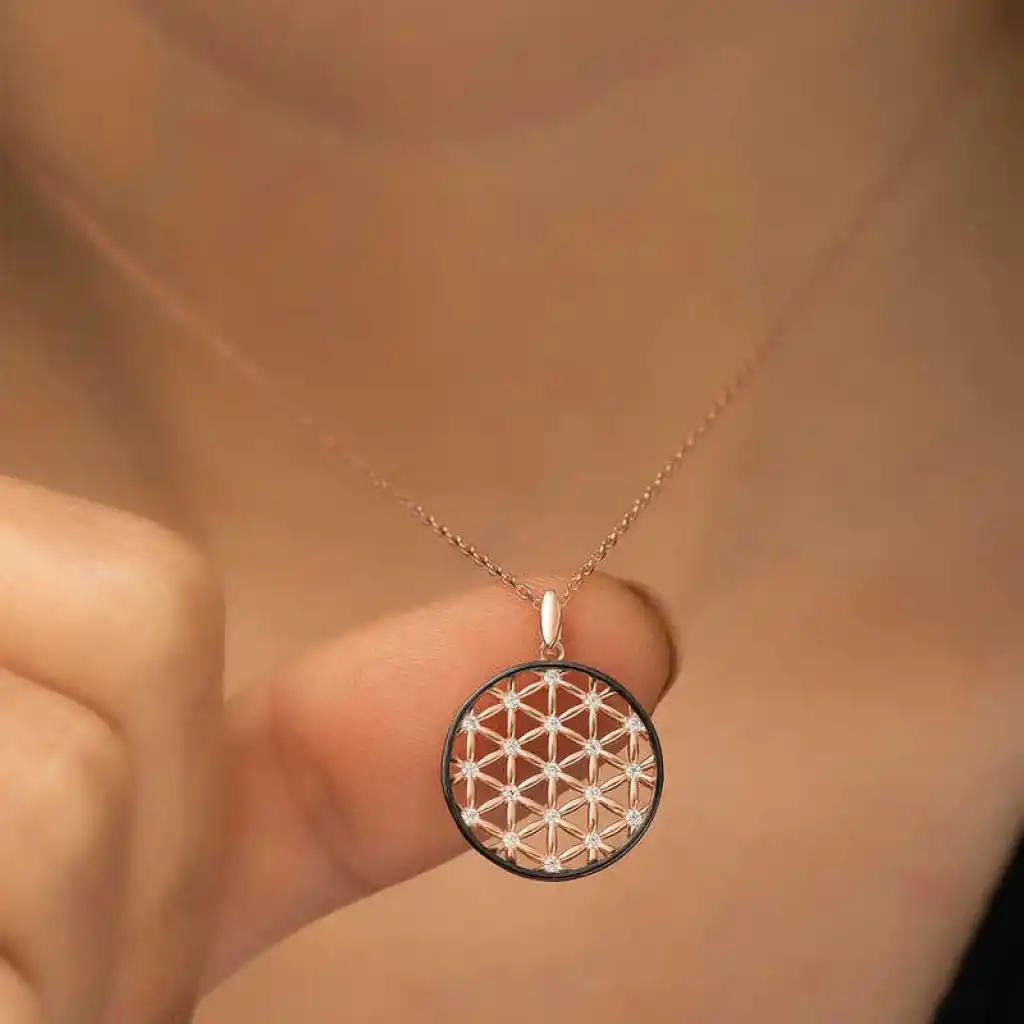 Yaşam çiçeği, iç içe geçmiş eşit alana sahip çok sayıda çember ve dışında büyük bir çemberden oluşan geometrik şekilden oluşmaktadır. Her bir çemberin merkezi, çevresindeki altı çemberin çevrelerinin kesiştiği yerdedir. Drunvalo Melchizedek bu sembolün evrenin ve yaşamın sırlarını barındırdığını iddia etmektedir. Günün her anında severek kullanabileceğiniz hoş bir aksesuardır. Gümüş yaşam çiçeği bayan kolye 925 ayar gümüşten imal edilmiştir. Bu kolye üzerine rose altın kaplama yapılmıştır. Rose altın kaplama yapılan ürünler parlaklığını uzun süre muhafaza eder ve gümüşü bakır rengine dönüştürür. Tüm gümüş bayan kolye modellerinde olduğu gibi gümüş yaşam çiçeği bayan kolye modeli de el emeği ile üretilmiştir. Gümüş ve değerli taşlar nedeniyle belirtilen ortalama ürün ağırlığında ± %10 sapma olabilmektedir. Ürünlerimizin tamamı el emeği ile üretilmiştir.