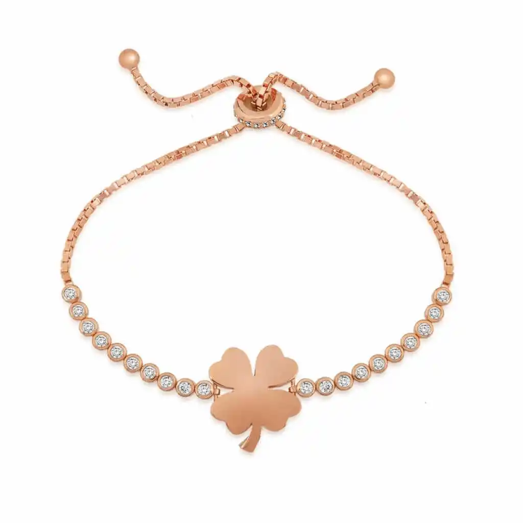 Dört yapraklı yonca bütün kültürlerde iyi şansın sembolü olarak kabul edilir. Yoncanın dört yaprağının da ayrı birer anlamı vardır. Birinci yaprak ümidi, ikincisi imanı, üçüncüsü aşkı, dördüncü yaprak ise şansı simgeler. Kalpli yoncadan oluşan özel tasarım bayan bileklik modeli 925 ayar gümüşten imal edilmiştir. Bu zarif bileklik genç aşıkların özel günlerde tercih edebileceği çok şık bir seçenek olacaktır. Gümüş yonca bayan bileklik üzerinde rose kaplama vardır. Rose kaplama yapılan gümüş bayan bileklikler parlaklığını uzun süre muhafaza eder. Gümüş yonca bayan bileklik sizin olduğu kadar sevdiklerinizin de keyifle takacağı en güzel hediyelerden biri olacaktır. Tüm gümüş bayan bileklik modellerimizde olduğu gibi gümüş yonca bayan bileklik de el emeği ile üretilmiştir. Gümüş ve değerli taşlar nedeniyle belirtilen ürün ağırlığında ± %10 sapma olabilmektedir.