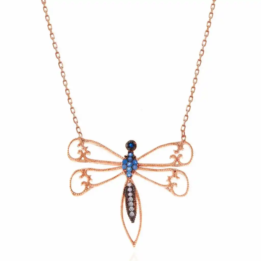 Yusufçuk, bağlılığın, sadakatin, tek eşliliğin sembolüdür... Ölüme rağmen aşkından vazgeçmez yusufçuk... Doğa gereği, erkek yusufçuk ile dişi yusufçuğun çiftleşmesinin ardından erkek yusufçuk ölmektedir. Sonunda ölüm olduğunu bile bile erkek yusufçuk, hayatı boyunca tek bir dişi ile çiftleşiyor ve bundan asla vazgeçmiyor... Kolye, böyle hüzün ve sadakat kokan bu güzellikten ilham alarak tasarlanmıştır... Bu zarif kolye; doğum günü hediyesi, sevgililer günü hediyesi veya özel günlerde tercih edilebilecek müthiş bir kolyedir. Bu şık tasarım 925 ayar gümüşten imal edilmiştir. Gümüş üzerine rose kaplama yapılmıştır. Rose kaplama yapılan kolyeler parlaklığını uzun süre muhafaza eder, gümüş rengini pembe renge dönüştürür. Kolye üzerinde bulunan taşlar zirkondur. Tüm kadın gümüş kolyelerde olduğu gibi gümüş yusufçuk kadın kolye de el emeği ile üretilmiştir. Gümüş ve değerli taşlar nedeniyle belirtilen ürün ağırlığında ± %10 sapma olabilmektedir.