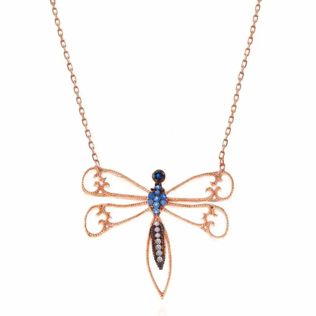 Yusufçuk, bağlılığın, sadakatin, tek eşliliğin sembolüdür... Ölüme rağmen aşkından vazgeçmez yusufçuk... Doğa gereği, erkek yusufçuk ile dişi yusufçuğun çiftleşmesinin ardından erkek yusufçuk ölmektedir. Sonunda ölüm olduğunu bile bile erkek yusufçuk, hayatı boyunca tek bir dişi ile çiftleşiyor ve bundan asla vazgeçmiyor... Kolye, böyle hüzün ve sadakat kokan bu güzellikten ilham alarak tasarlanmıştır... Bu zarif kolye; doğum günü hediyesi, sevgililer günü hediyesi veya özel günlerde tercih edilebilecek müthiş bir kolyedir. Bu şık tasarım 925 ayar gümüşten imal edilmiştir. Gümüş üzerine rose kaplama yapılmıştır. Rose kaplama yapılan kolyeler parlaklığını uzun süre muhafaza eder, gümüş rengini pembe renge dönüştürür. Kolye üzerinde bulunan taşlar zirkondur. Tüm kadın gümüş kolyelerde olduğu gibi gümüş yusufçuk kadın kolye de el emeği ile üretilmiştir. Gümüş ve değerli taşlar nedeniyle belirtilen ürün ağırlığında ± %10 sapma olabilmektedir.