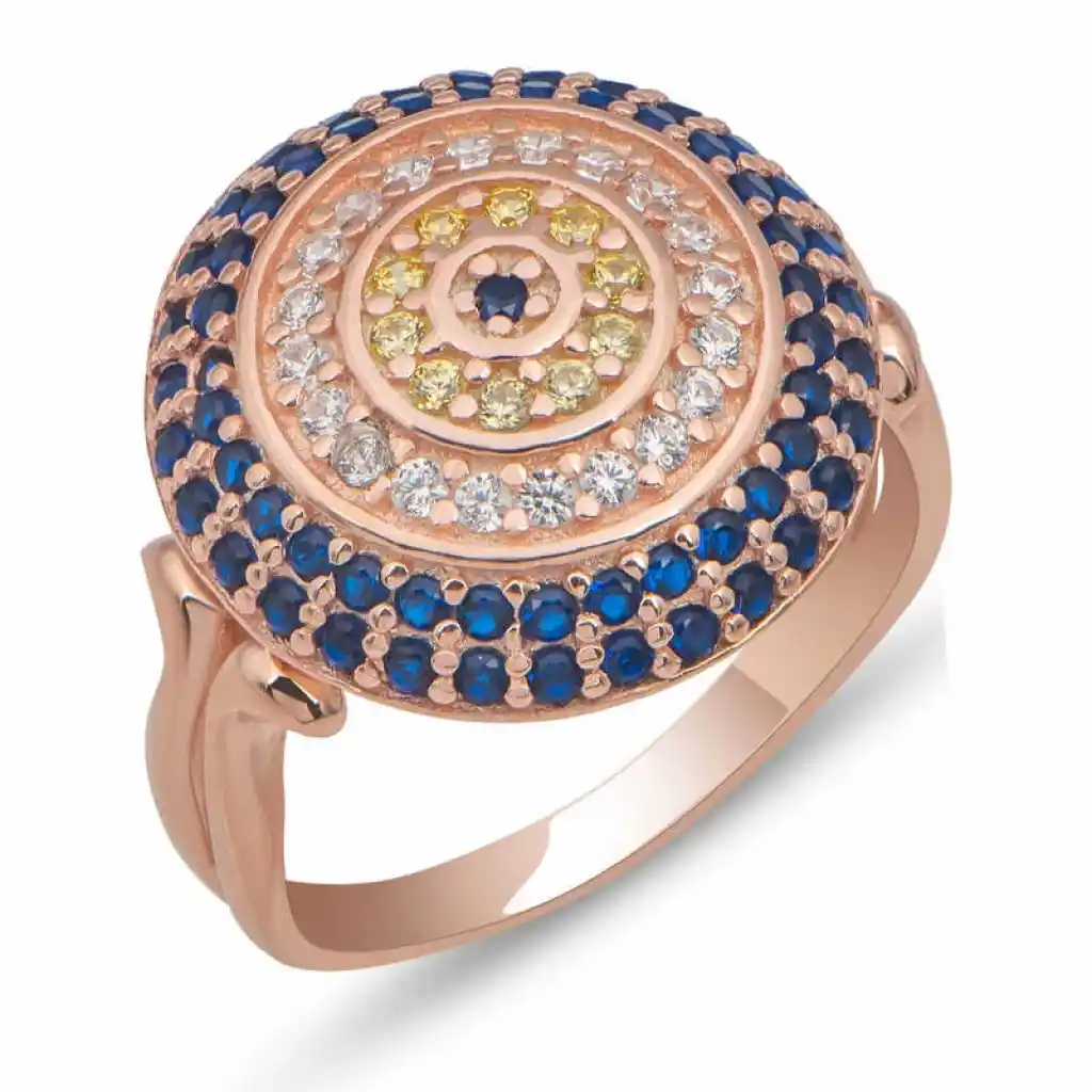 Gümüş Rose Yuvarlak Nazarlı Kadın Yüzük