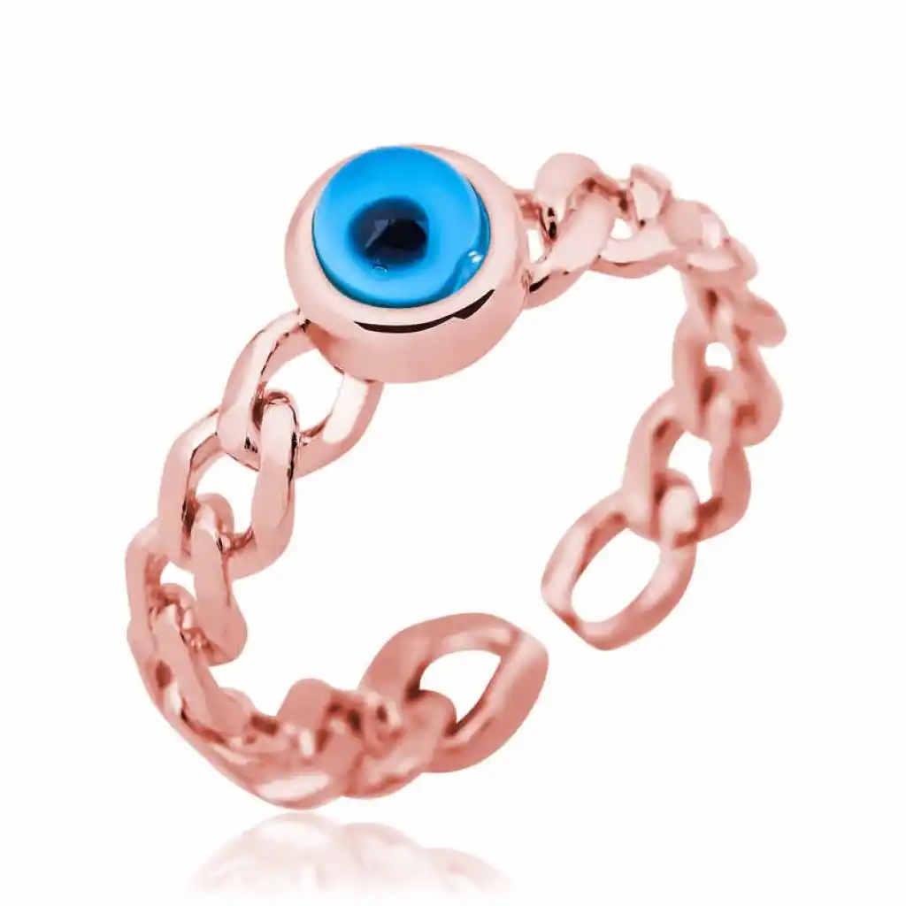 Gümüş Rose Zincir Desenli Nazarlı Bayan Yüzük