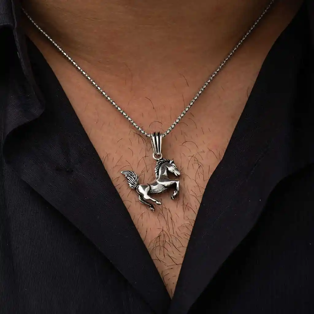 Gümüş Şahlanmış At Kolye