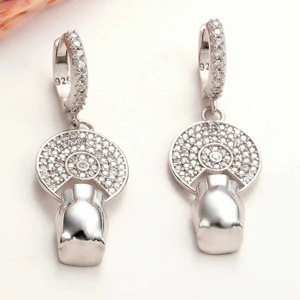 Gümüş Sallantılı Kaplan Figürlü Kadın Küpe