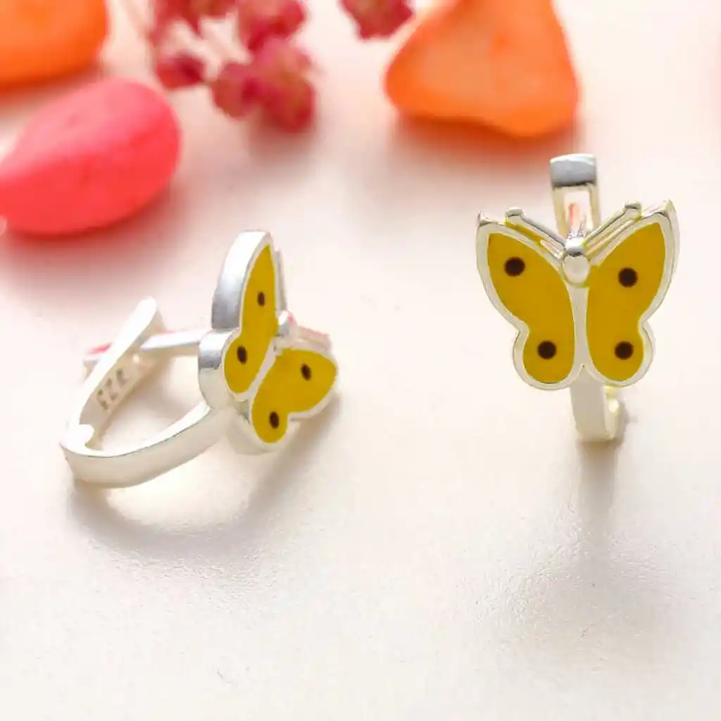 Gümüş Sarı Kelebek Çocuk Küpesi