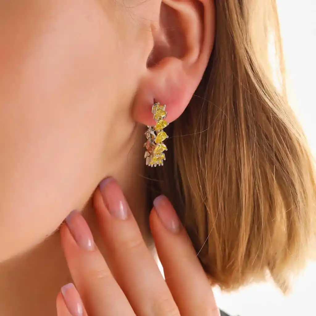 Gümüş Sarı Taşlı Damla Çivili Kadın Küpe