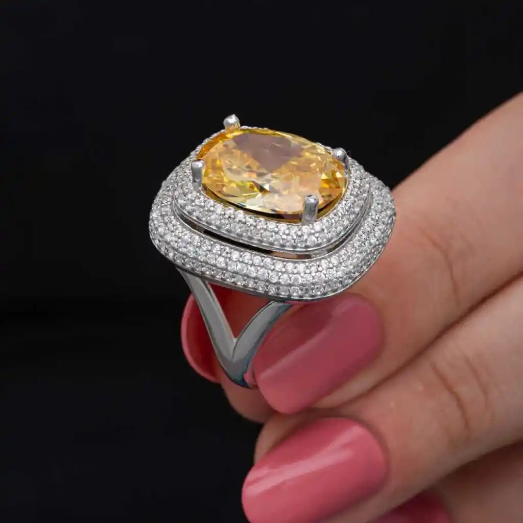 Yüzyıllardır imajınızın simgesi olan takılar, birbirinden özel tasarım koleksiyonlarda sizlerle buluşuyor. Günlük hayatınızdan özel günlerinize kadar her anınızda yanınızda olan gümüş yüzük modelleriyle sizlerde tarzınızı yansıtın. Bu birbirinden farklı dikkat çekici tasarımlar sayesinde ruhunuza hitap eden yaratıcı özgünlüğü ortaya koymaya başlayın. Hayalinizdeki kombinleri gerçeğe dönüştürebileceğiniz gümüş yüzük çeşitleri ile girdiğiniz her ortamda ilgi çekici stiliniz ile ön plana çıkmak artık çok kolay... Sitrin taşlı kadın yüzük 925 ayar gümüşten imal edilmiştir, üzerine rodyum kaplama yapılmıştır. Gümüş yüzük modellerimizin tamamı el emeği ile üretilmiştir. Gümüş ve değerli taşlar nedeniyle belirtilen ortalama ürün ağırlığında ± %10 sapma olabilmektedir.