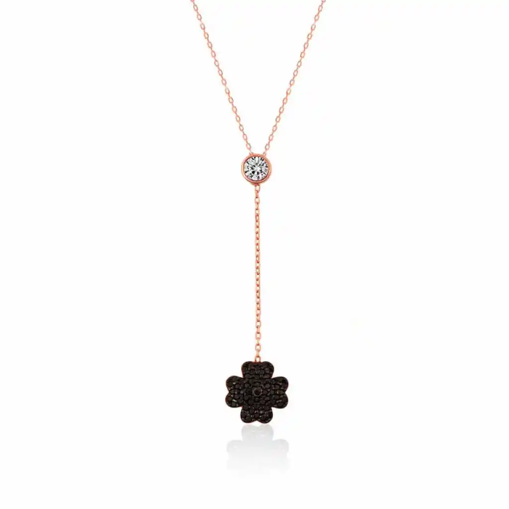 Gümüş Siyah Yonca Bayan Kolye
