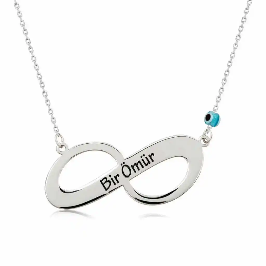 Sevgilinize sonsuz aşkı ifade etmenin en güzel, en anlamlı yollarından biri de ona sonsuzluk temalı gümüş takılar hediye etmektir. Sevgilinize hediye edeceğiniz bu özel kolye ile ona olan sonsuz aşkınızı sevginizi ifade edebilir sonsuza kadar birlikte olacağınız mesajı verebilirsiniz. Sonsuz bir ömür bayan kolye modeli 925 ayar gümüşten imal edilmiştir. Gümüş üzerine rodyum kaplama yapılmıştır. Rodyum kaplama yapılan gümüş bayan kolyeler parlaklığını uzun süre muhafaza eder ve oksitlenmesi gecikir. Gümüş olan zincirin boyu ortalama 45 cm"dir. Kolye üzerinde bir ömür yazmaktadır. Tüm gümüş bayan kolye modellerinde olduğu gibi gümüş sonsuz bir ömür bayan kolye modeli de el emeği ile üretilmiştir. Gümüş ve değerli taşlar nedeniyle belirtilen ortalama ürün ağırlığında ± %10 sapma olabilmektedir.