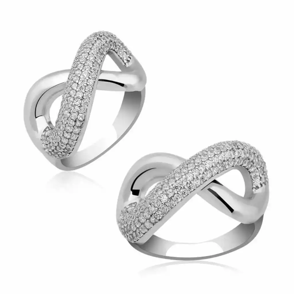 Gümüş yüzükler son yıllarda rose altın ve 18 ayar sarı altın gibi farklı görünümlerde karşımıza çıkıyor. Değişen trendlere rağmen, klasikleşmiş rodyum kaplama gümüş yüzükler ihtişamından ödün vermek istemeyenlerin bir numaralı tercihi oluyor. Zerafetin cisimleştiği yüzükler, modaya uygun oluşuyla kadınların kendilerini daha güzel hissetmesini sağlıyor. Sevginizi göstermenin en güzel yollarından biri olan gümüş yüzükler, harika birer hediye seçeneği olarak değerlendiriliyor. Gümüş sonsuzluk bayan yüzük 925 ayar gümüşten imal edilmiştir. Bu yüzük üzerine rodyum kaplama yapılmıştır. Rodyum kaplama yapılan gümüş bayan yüzük modelleri parlaklığını uzun süre muhafaza eder. Üzerinde bulunan taşlar zirkondur. Tüm gümüş bayan yüzük modellerimizde olduğu gibi gümüş sonsuzluk bayan yüzük modeli de el emeği ile üretilmiştir. Gümüş ve değerli taşlar nedeniyle belirtilen ortalama ürün ağırlığında ± %10 sapma olabilmektedir.