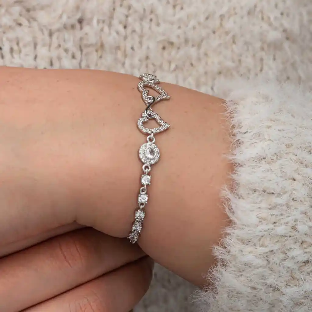 İki kalp figürü,sevgi dolu bir bağı,iki kişinin birbirine olan derin bağlılığını temsil eder. Sonsuzluk sembolü ise,bu bağın zamanla sınırlı olmadığını, ebedi olduğunu vurgular.Sevgilinize hediye edeceğiniz bu özel tasarım gümüş bileklik ile ona olan sonsuz aşkınızı ve sevginizi ifade edebilir,sonsuza kadar birlikte olacağınız mesajı verebilirsiniz.Günlük ve özel günlerinizde kullanabileceğiniz sonsuzluk iki kalp bileklik 925 ayar gümüşten üretilmiştir.Gümüş üzerine rodyum kaplama yapılmıştır.Tüm gümüş bilekliklerde olduğu gibi gümüş sonsuzluk iki kalp kadın bileklik modeli de el emeği ile üretilmiştir.Gümüş ve değerli taşlar nedeniyle belirtilen ürün ağırlığında ± %10 sapma olabilmektedir.