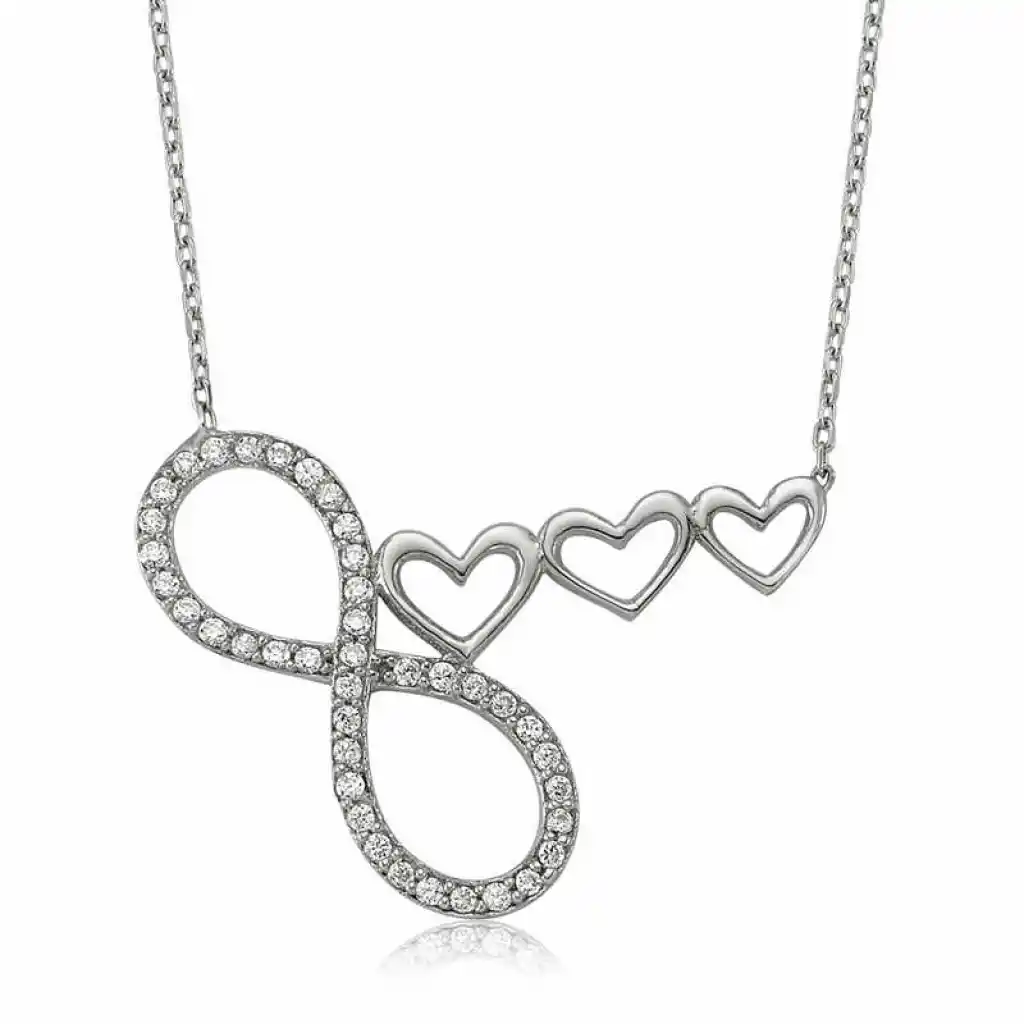 Gümüş Sonsuzluk Kalp Bayan Kolye Sonsuzluk Kolyeler, Kalpli Kolyeler Gümüş Sonsuzluk Kalp Bayan Kolye Aşk ve sevginin simgesi sonsuzluk ile kalp bir arada kullanılarak ortaya çıkan bu tasarım kolye ço