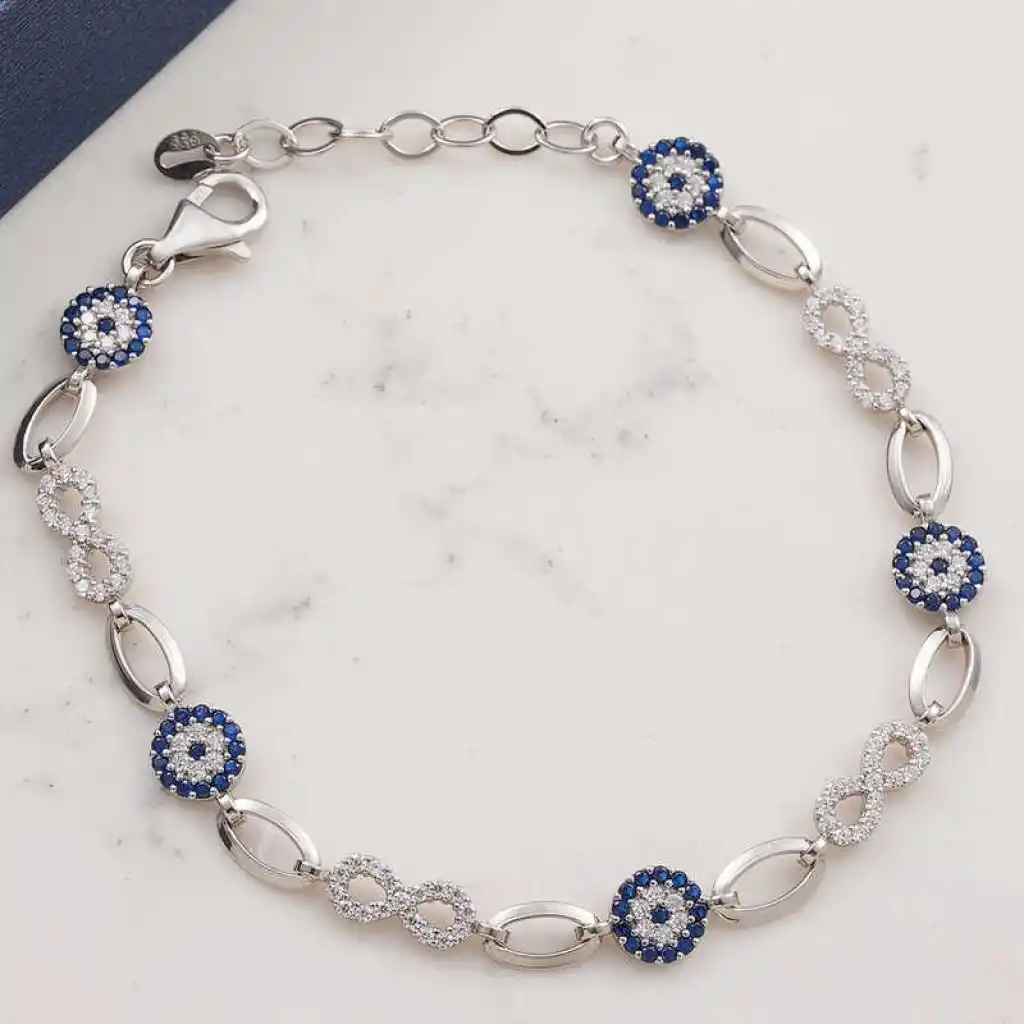 Gümüş Sonsuzluk Nazar Kadın Bileklik