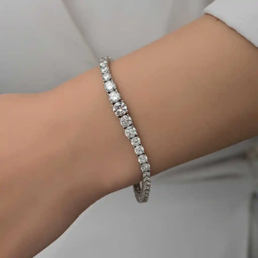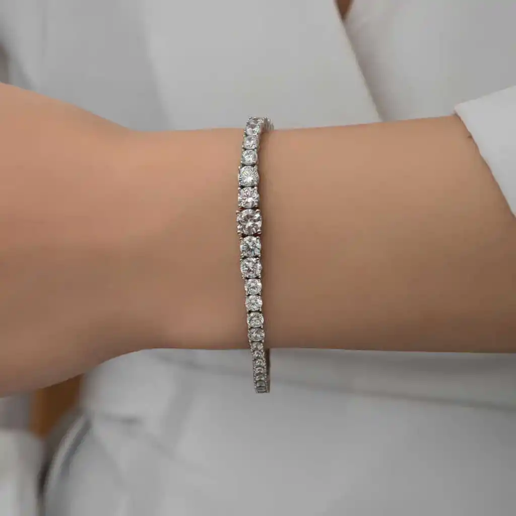 Gümüş Süzme Beyaz Taşlı Su Yolu Kadın Bileklik