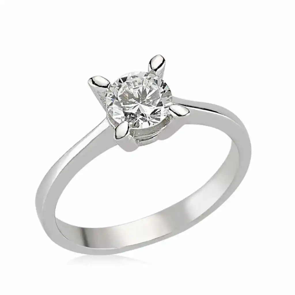 Klasik tek taş modellerinin güzel bir örneği olan bu model tüm bayan yüzük modelleri arasında dikkat çekici tasarımıyla ön plana çıkıyor. 925 ayar gümüşten imal edilmiş olup, yüzük üzerine rodyum kaplama yapılmıştır. Rodyum kaplama yapılan gümüş yüzük modelleri parlaklığını uzun süre muhafaza eder, oksitlenmesi gecikir. Yüzük üzerinde kullanılan beyaz taş zirkondur. Zirkon pırlanta benzeri bir taştır. Görüntü itibariyle pırlantaya benzer ama gerçek değildir. Genelde gümüş bayan tek taş yüzük modellerinde zirkon taş kullanılır. Bayan tek taş yüzük modellerinin tamamı el emeği ile üretilmiştir. Gümüş ve değerli taşlar nedeniyle belirtilen ortalama ürün ağırlığında ± %10 sapma olabilmektedir.