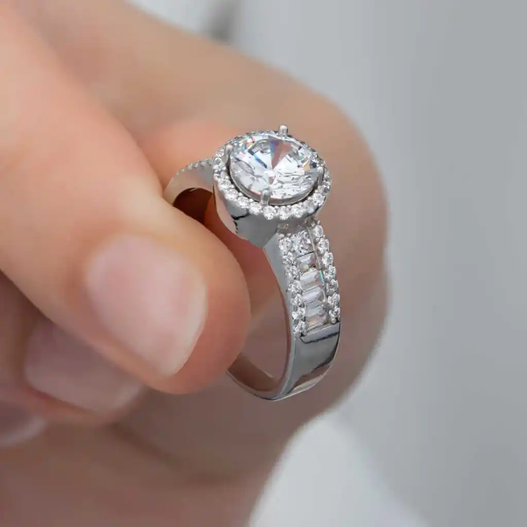 Bu özel tasarım tek taş yüzük 925 ayar gümüşten imal edilmiştir. Gümüş üzerine rodyum kaplama yapılmıştır. Rodyum kaplama yapılan kadın gümüş yüzük modelleri parlaklığını uzun süre muhafaza eder, oksitlenmesi gecikir. Yüzük üzerinde bulunan taşlar zirkon ve bagettir. Sevdiğinize doğum günü, sevgililer günü ve özel günlerde verebileceğiniz mükemmel bir hediye seçeneğidir. Gümüş kadın yüzük modellerimizin tamamında olduğu gibi bu tek taş kadın yüzük de tamamen el emeği ile üretilmiştir. Gümüş ve değerli taşlar nedeniyle belirtilen ortalama ürün ağırlığında ± %10 sapma olabilmektedir.