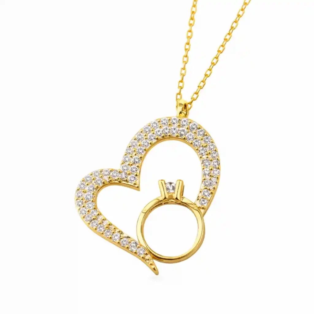 Zarafetin ve romantizmin en şık hali… Gümüş Tektaşlı Gold Kalp Kadın Kolye, kalp figürünün anlamını tektaş ışıltısıyla birleştirerek göz alıcı bir tasarım sunar. Kalbin içinden yükselen tektaş detayı, sevgi ve bağlılığın simgesi olurken; gold renk kaplama ile kolyeye modern, lüks ve dikkat çekici bir görünüm kazandırır.Kolyenin kalp formu, taşlı yapısı sayesinde ışığı her açıdan yansıtarak boynunuzda zarif bir parıltı oluşturur. Minimal şıklığı sevenler için günlük kullanımda rahatlıkla tercih edilebilir; aynı zamanda özel davetlerde, doğum günü kutlamalarında, yıldönümlerinde ve romantik buluşmalarda kombininize sofistike bir dokunuş ekler. Kaliteli işçiliği ve şık duruşuyla hediye seçeneği olarak da oldukça güçlü bir üründür. Sevgiliye, eşe veya değer verdiğiniz herkese anlamlı bir sürpriz yapmak isteyenler için ideal bir tercihtir. Hem romantik hem de zarif duruşuyla, her yaş grubuna hitap eden özel bir modeldir. Gümüş ve değerli taşlar nedeniyle belirtilen ortalama ürün ağırlığında ± %10 sapma olabilmektedir.