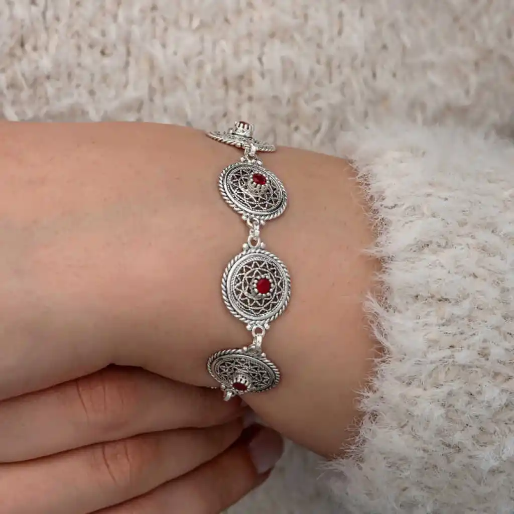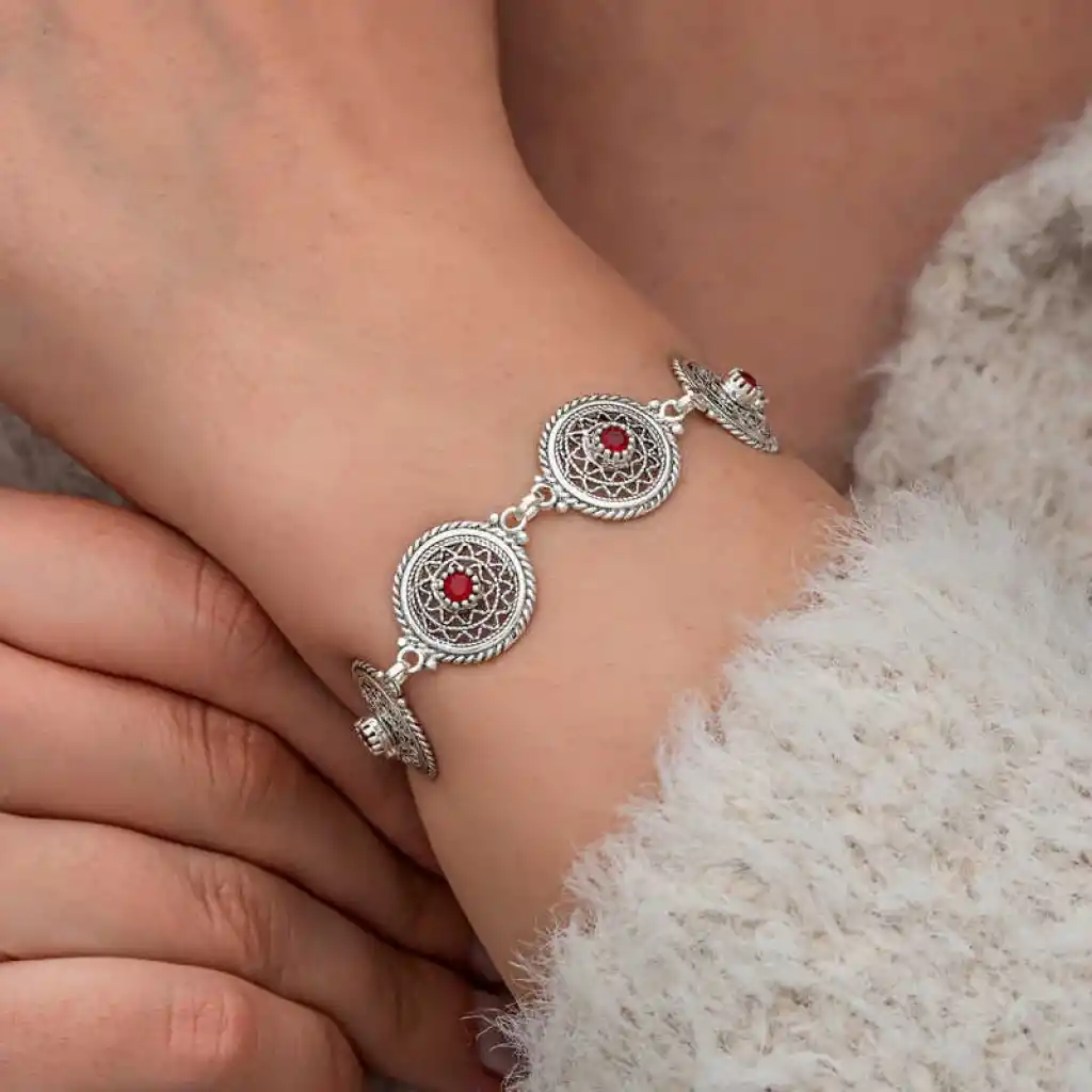 Gümüş Telkari Yakut Taşlı Kadın Bileklik