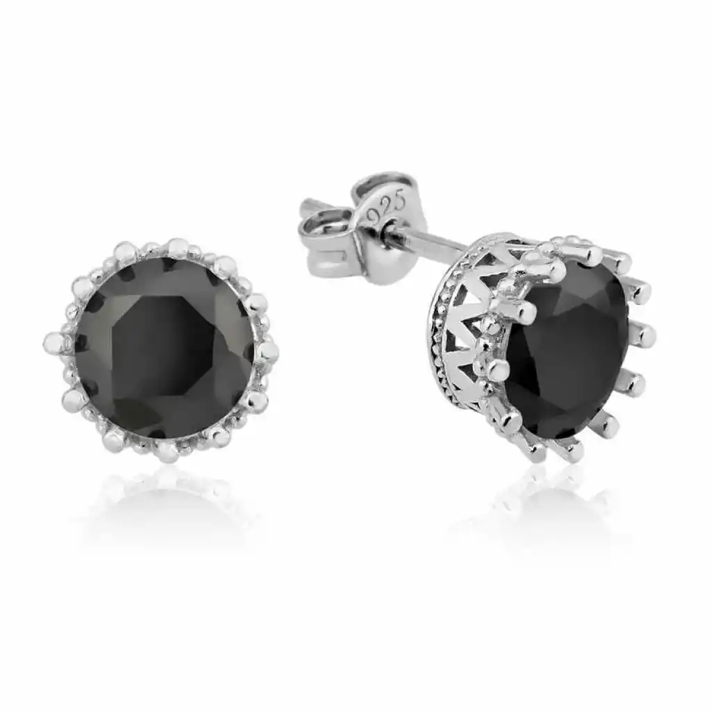 Gümüş Tırnaklı Siyah Tek Taş Küpe