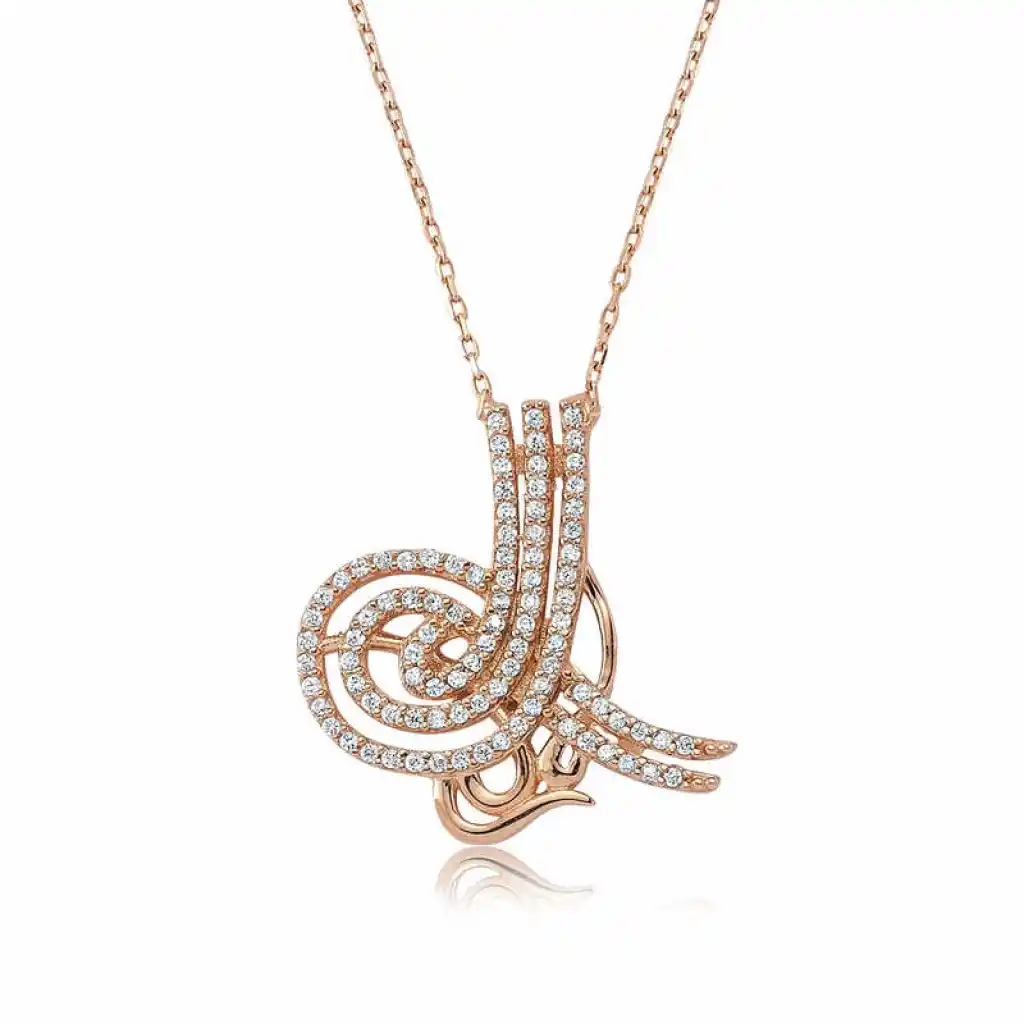Gençlere ve kendisini genç hisseden tüm bayanlara; gümüş ve zirkonun ışıltısını bir araya getiren bu mükemmel tasarım tuğralı bayan kolye modeli 925 ayar gümüşten imal edilmiştir. Sizin olduğu kadar sevdiklerinizin de keyifle takacağı tuğralı kolye sevdiğinize verebileceğiniz en güzel hediyelerden biri olacaktır. Gümüş üzerinde rose altın kaplama yapılmıştır. Rose altın kaplama yapılan gümüş tuğralı bayan kolye modelleri parlaklığını uzun süre muhafaza eder. Tüm bayan kolye modellerinde olduğu gibi tuğralı gümüş kolye modelimiz de el emeği ile üretilmiştir. Gümüş ve değerli taşlar nedeniyle belirtilen ortalama ürün ağırlığında ± %10 sapma olabilmektedir.