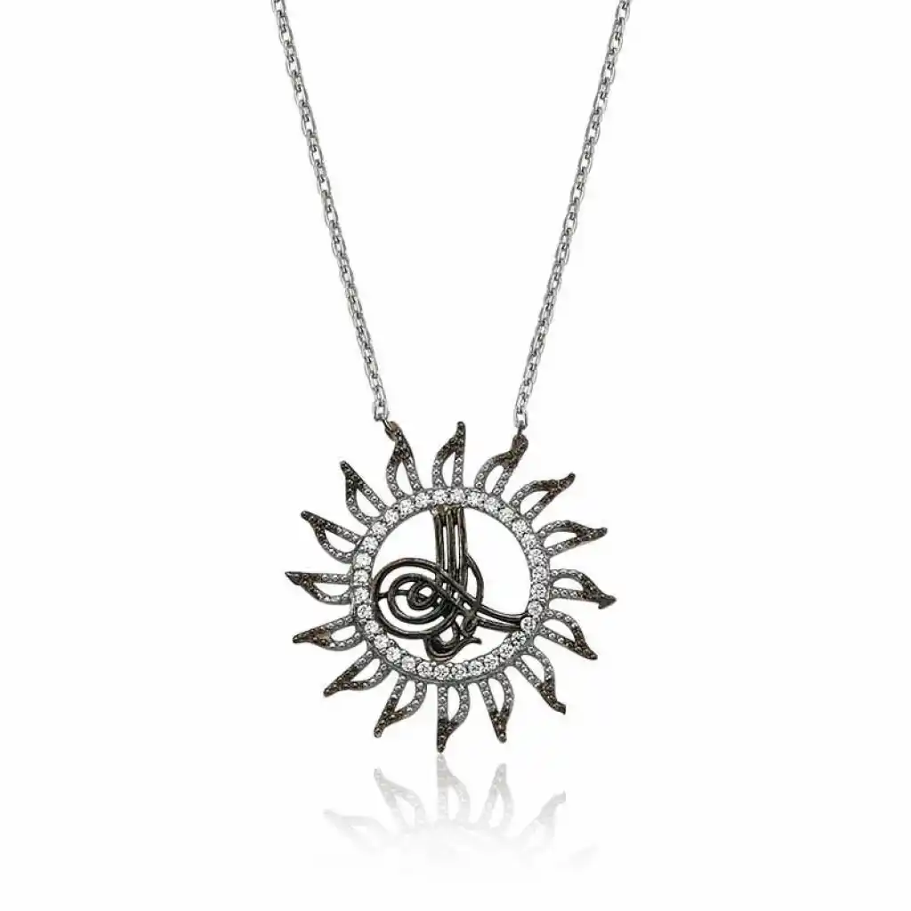 Tuğra, Osmanlı sultanlarının imzası anlamına gelir. Her tuğra; ona ait olan padişahın ismini, varlığını, hükümdarlığını ifade eder. Tuğra sembolü her padişaha göre farklı olmak üzere birçok şekilde günümüze ulaşmıştır. Tuğra Osmanlının her döneminde korunmuş, önemini hiç kaybetmemiştir. Ve zamanla hat sanatımızda da önemli bir yere sahip olup, günümüzde hattatlar tarafından sanatsal olarak yaşatılmaktadır. Bu sanatı yansıtan tuğralı şık gümüş kolyeyi severek kullanabilir doğum günü, sevgililer günü veya anneler gününde de hediye olarak tercih edebilirsiniz. Gümüş tuğra bayan kolye, 925 ayar gümüşten imal edilmiştir. Gümüş üzerine rodyum kaplama yapılmıştır. Rodyum kaplama yapılan gümüş bayan kolyeler parlaklığını uzun süre muhafaza eder, oksitlenmesi gecikir. Zincir boyu ortalama 45 cm"dir. Tüm gümüş bayan kolye modellerinde olduğu gibi bu gümüş tuğralı güneş bayan kolye modeli de tamamı el emeği ile üretilmiştir. Gümüş nedeniyle belirtilen ortalama ürün ağırlığında ± %10 sapma olabilmektedir.