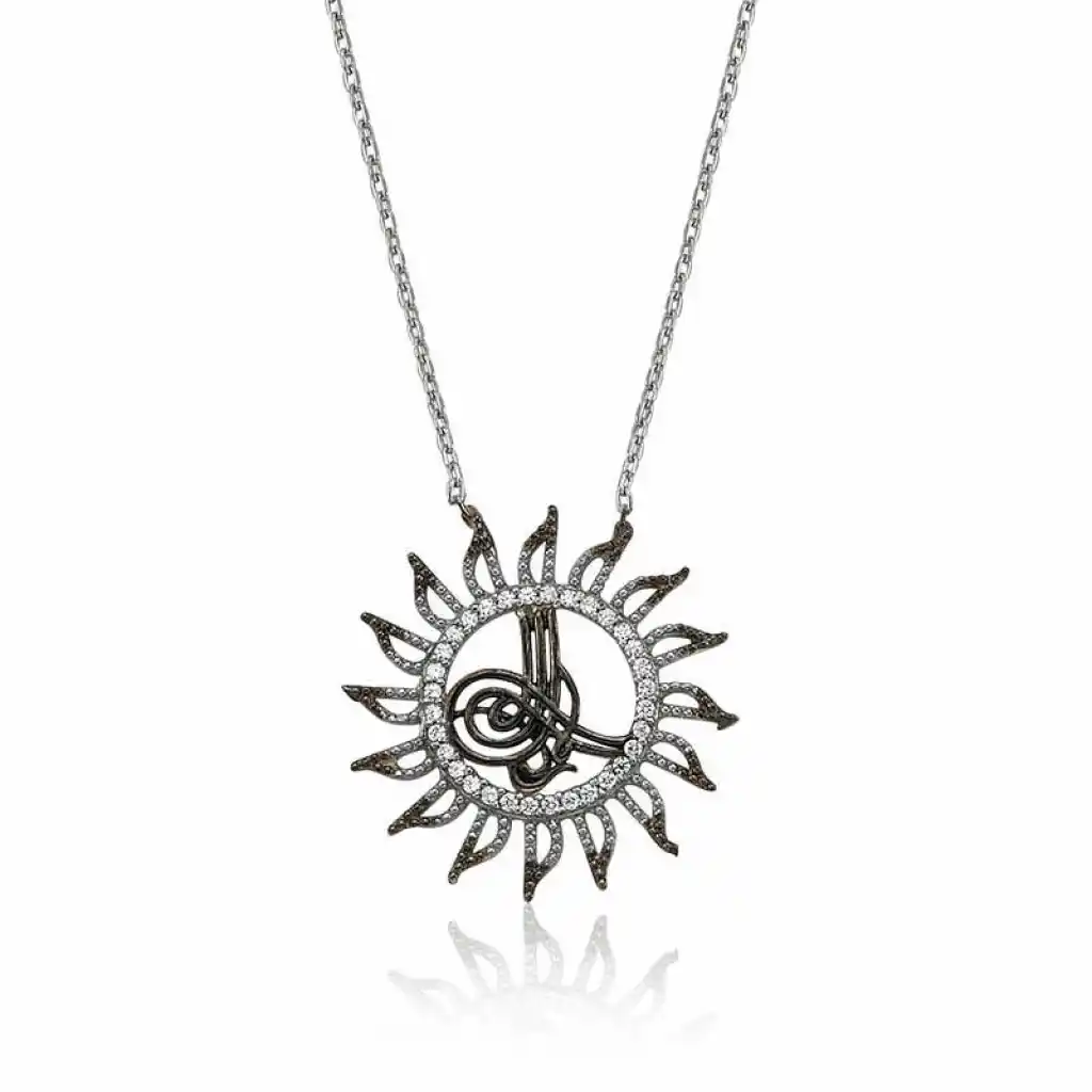 Gümüş Tuğralı Güneş Bayan Kolye