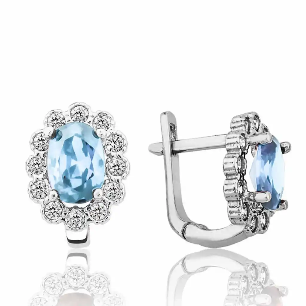 Gümüş Turkuaz Çiçek Desenli J Kadın Küpe