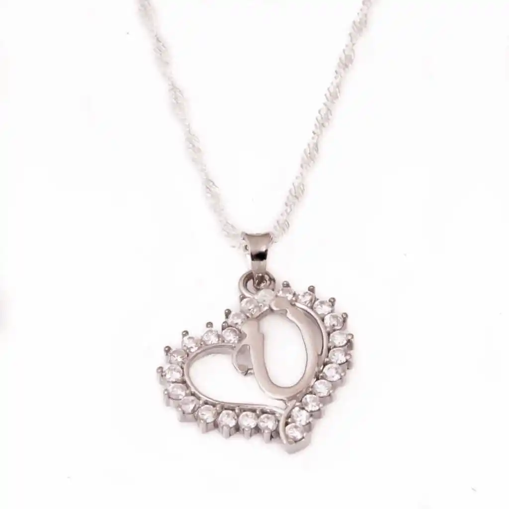 Gümüş Ü Harf Kalpli Bayan Kolye