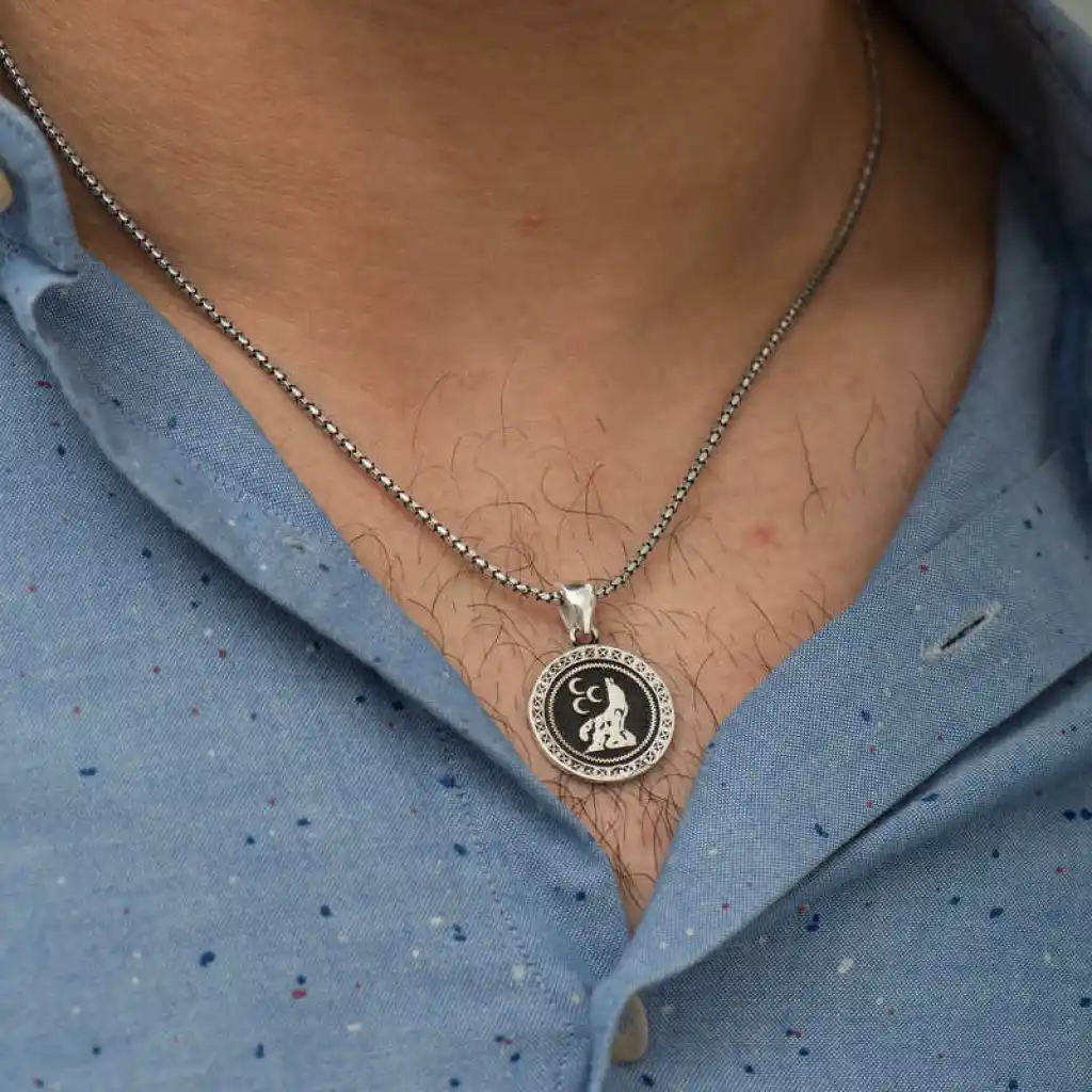 Bozkurt, Türklerin ulusal sembolüdür. Tarih öncesi dönemlerden beri Türklerce kutsal sayılmıştır. Bozkurt"un kutsal sayılmasının ve Türklerin ulusal sembolü olmasının en önemli nedeni, Türklerin bir bozkurtun soyundan geldiklerine inanmalarıdır. Bozkurt, bugün Türk milliyetçiliğinin sembolüdür. Atatürk tarafından da ulusal sembol ilan edilmiş ve birçok yerde kullanılmıştır. Cumhuriyet’in ilk yıllarında Türk Parası üzerine Bozkurt resimleri basılmıştır. Hilal taktiği (veya Turan/Türk taktiği) adı verilen yarım çember ile düşmanı ortaya alıp çemberi kapatma stratejisinin kurtlardan görülerek ilk defa Türkler tarafından uygulanmıştır. Üç hilal bozkurt kolye 925 ayar gümüşten imal edilmiştir. Gümüş üzerine oksit kaplama yapılmıştır. Oksit kaplama yapılan gümüş kolye modelleri parlaklığını uzun süre muhafaza eder ve oksitlenmesi gecikir. Gümüş olan zincir boyu ortalama 55 cm"dir. Bu üç hilal bozkurt kolye de diğer gümüş kolye modellerinde olduğu gibi el emeği ile üretilmiştir. Gümüş ve değerli taşlar nedeniyle belirtilen ürün ağırlığında ± %10 sapma olabilmektedir.